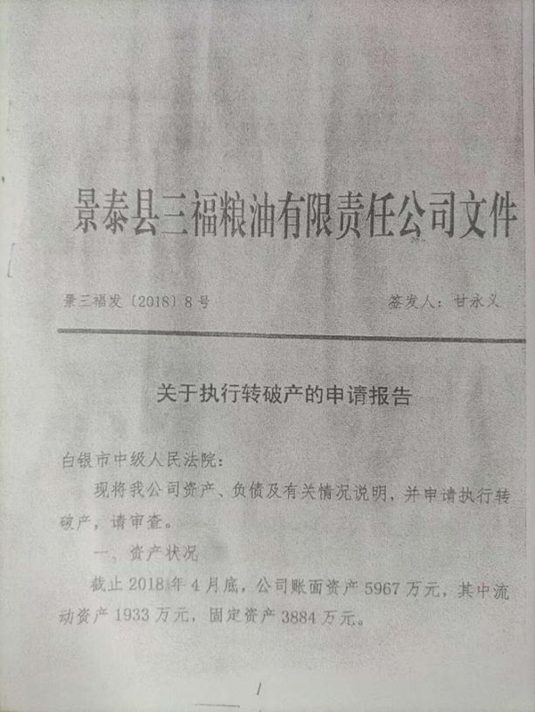 景泰三福粮油曾为省市重点农业产业化龙头企业,2018年5月14日因多笔法院执行而申请破产。八年来,该案的资产处置与债务清偿工作一直未能完成。据知情人士透露,破产管理人多次提交清算方案均遭债权人会议否决,核心争议在于企业曾办理的两笔虚假保理贷款,债权人呼吁尽快启动对银行贷款真实性的司法审查,剥离虚假债权,保障公平清偿。